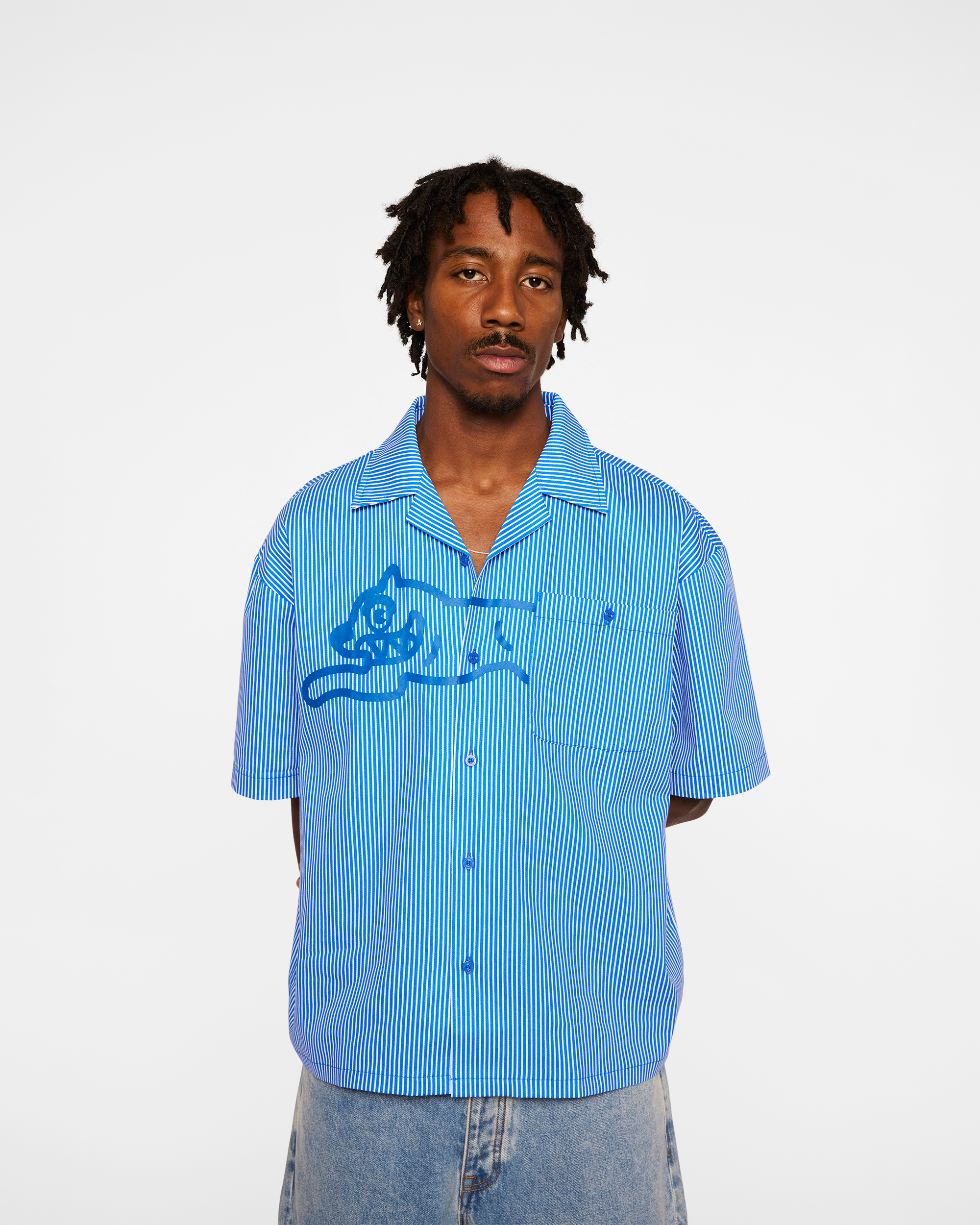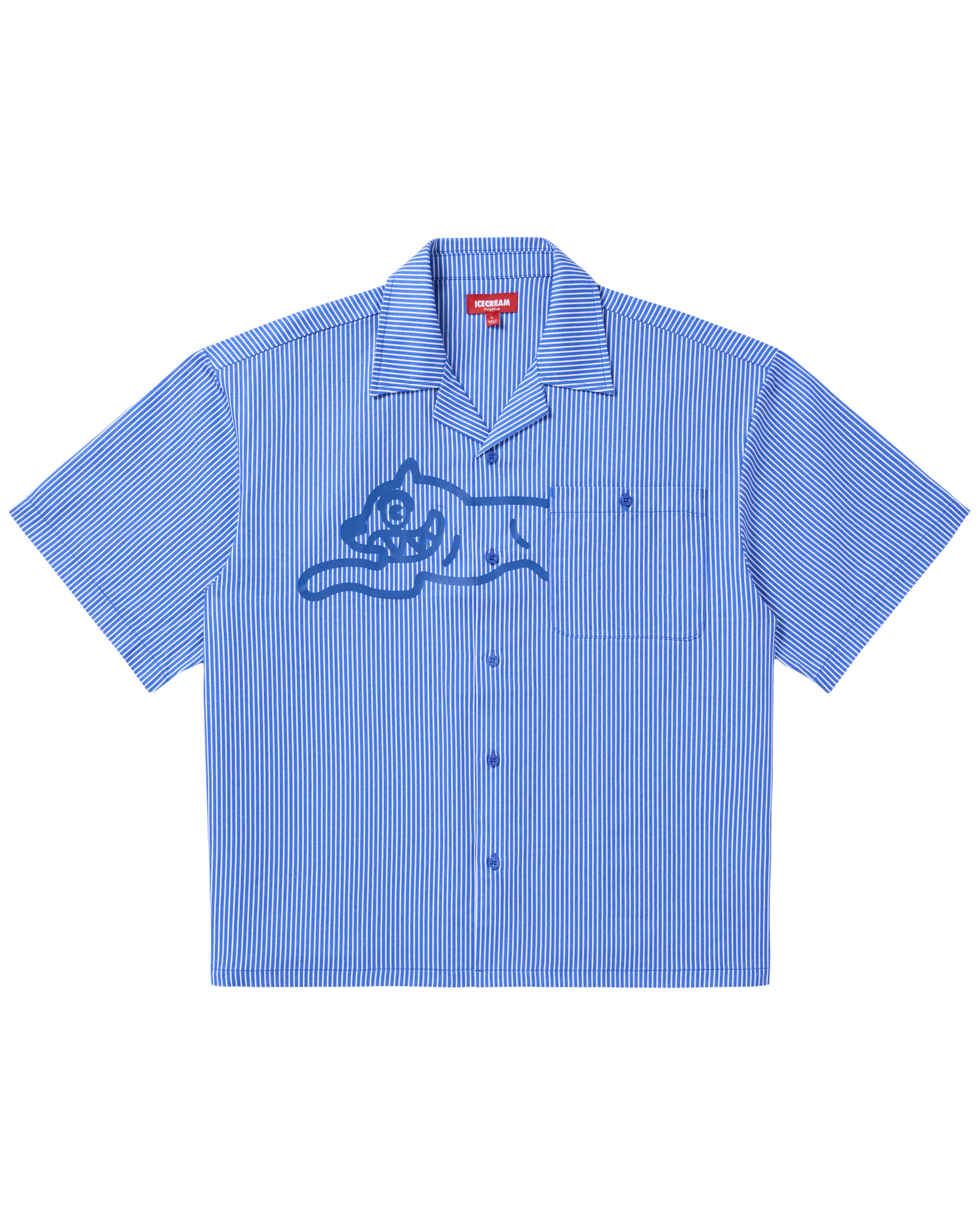 Woven shirt featuring a Running Dog graphic printed at front.