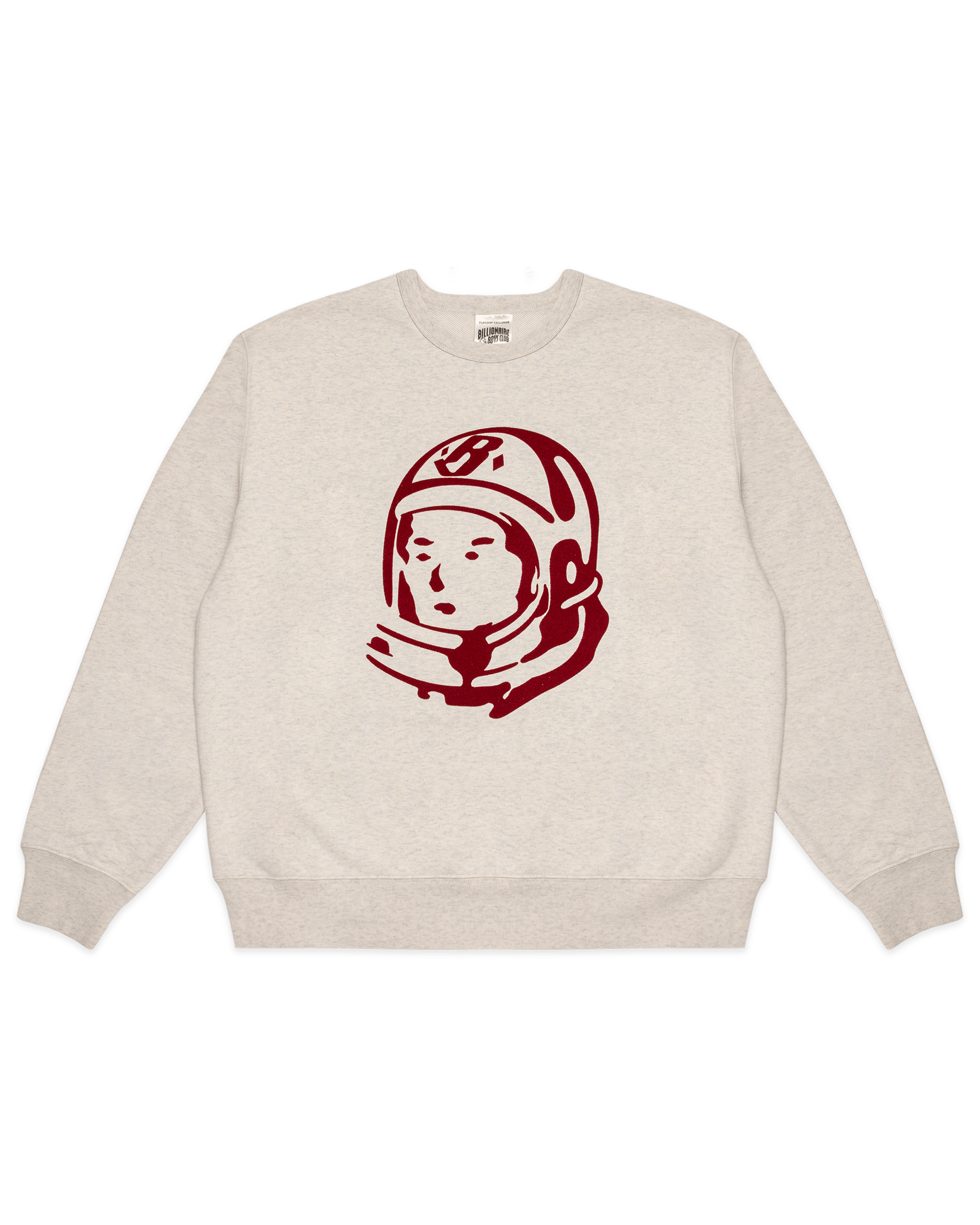 Crewneck sweatshirt detailed with a flocked red Helmet Head logo graphic.